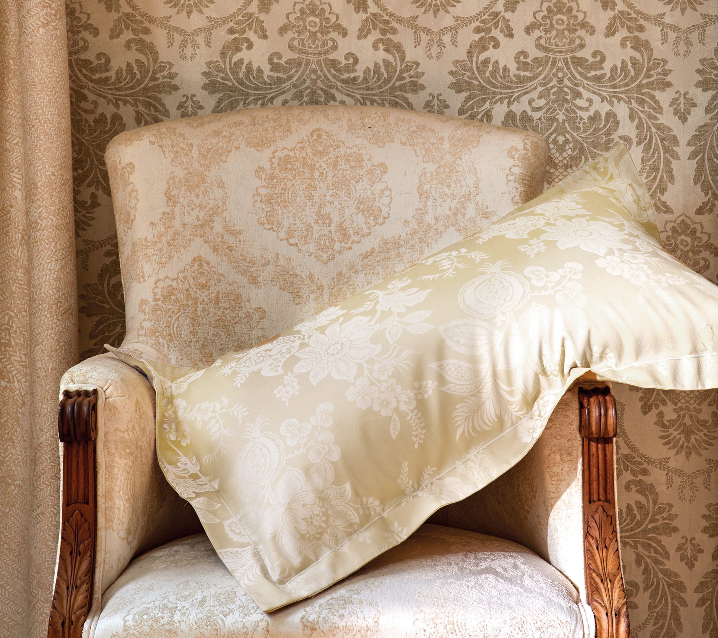 Dans son coloris Camomille, lumineux et délicat, le drap plat ADAGIO évoque le charme des pièces baignées de soleil, où l’authenticité du style ancien rencontre une sensibilité contemporaine. Chaque détail est pensé avec exigence.