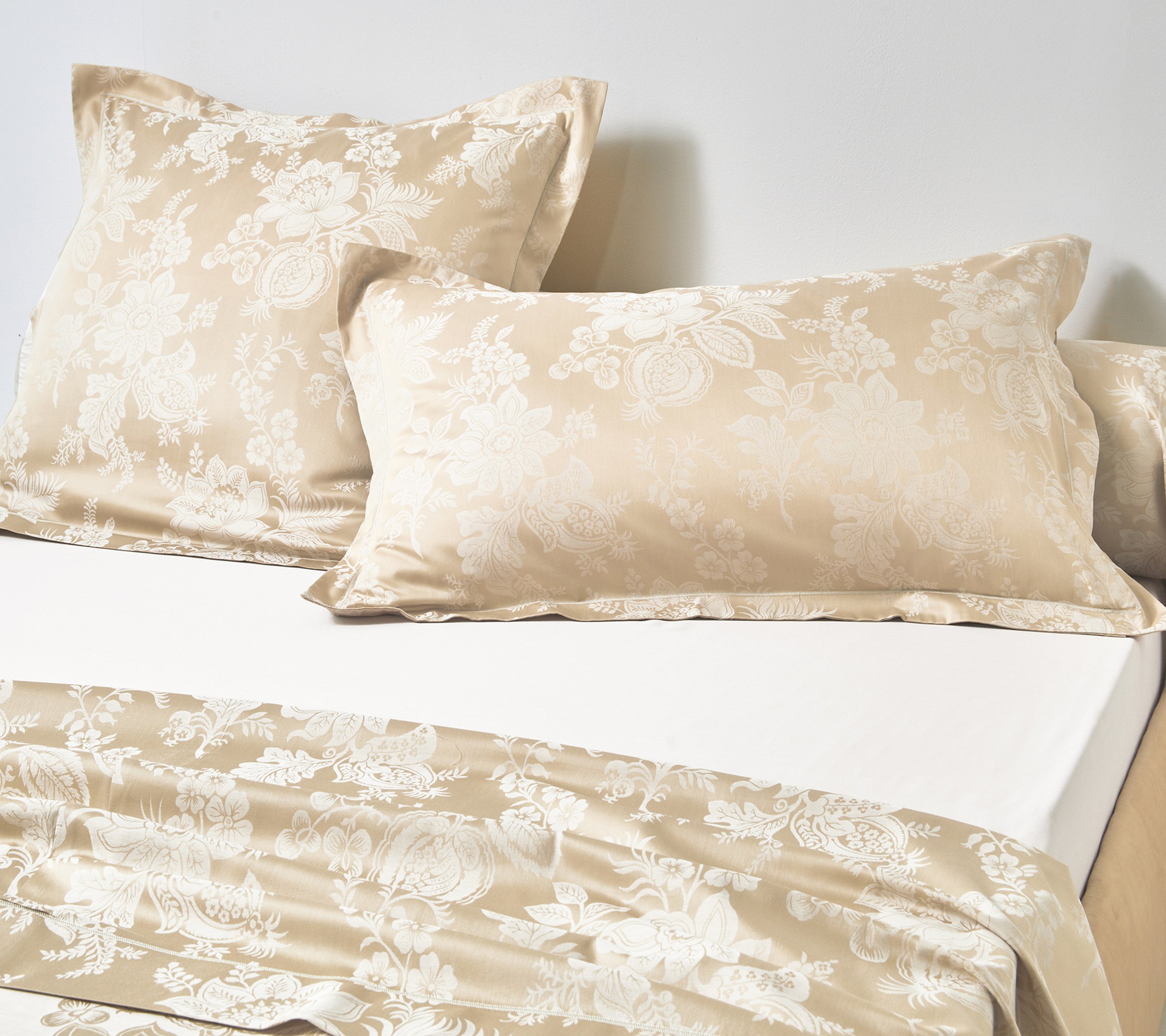 Drap 180/290 cm Satin Jacquard 100% coton peigné 180 fils/cm² Issu du prestigieux héritage de la maison anglaise SANDERSON, le drap plat de lit ADAGIO incarne une élégance intemporelle inspirée des intérieurs classiques. Son motif floral raffiné, emprunté aux damassés du XIXe siècle, se déploie avec subtilité sur l’ensemble de la parure, jouant avec la lumière et le relief pour créer une atmosphère à la fois chaleureuse et sophistiquée.
