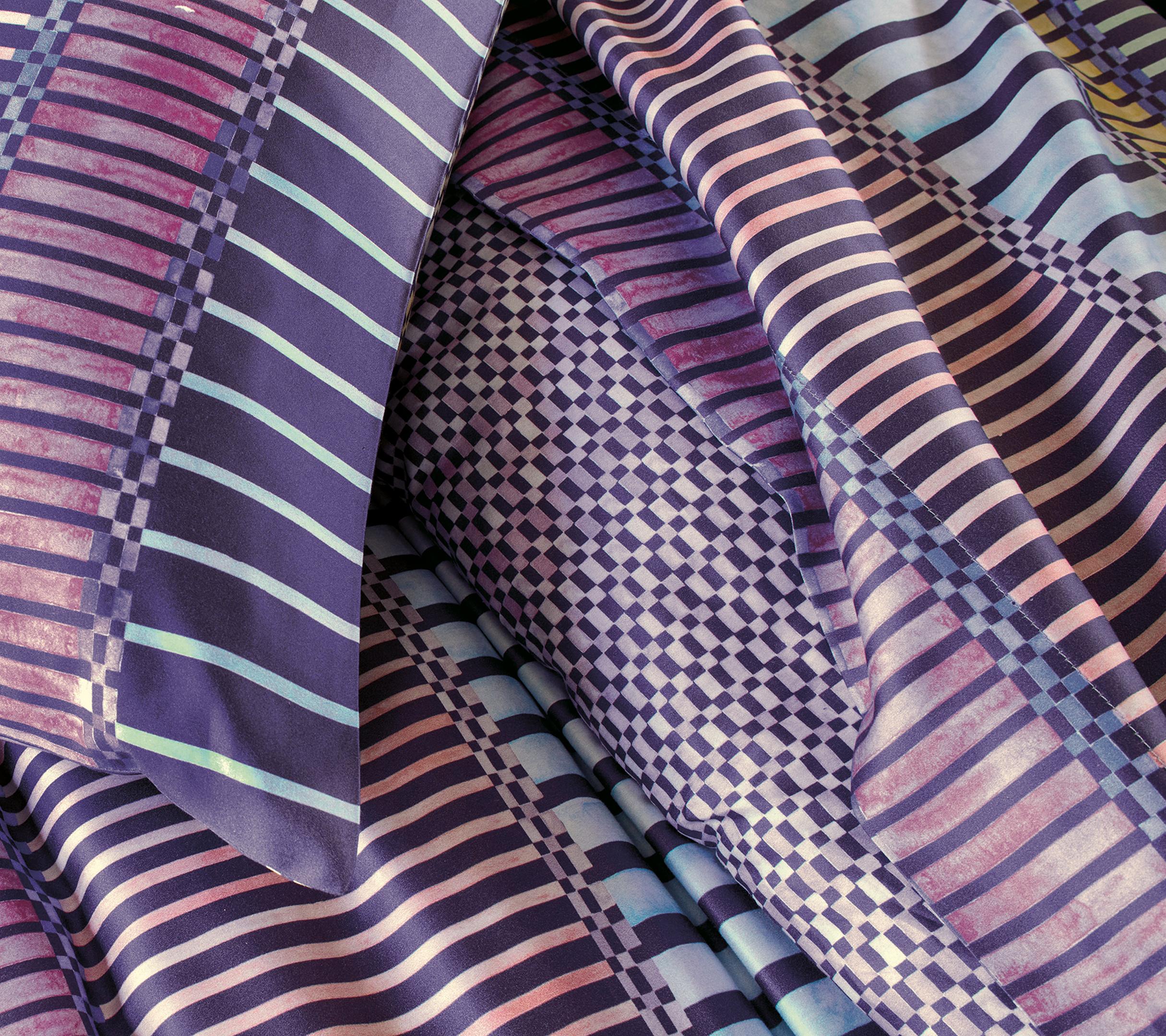 Confectionné en satin de coton ultradoux au tissage extrêmement fin et serré, 120 fils/cm², le drap plat PORTOFINO offre un toucher soyeux, une sensation de fraîcheur agréable et une excellente tenue dans le temps. La finesse du tissu révèle pleinement la subtilité des rayures aquarellées et la profondeur des coloris.