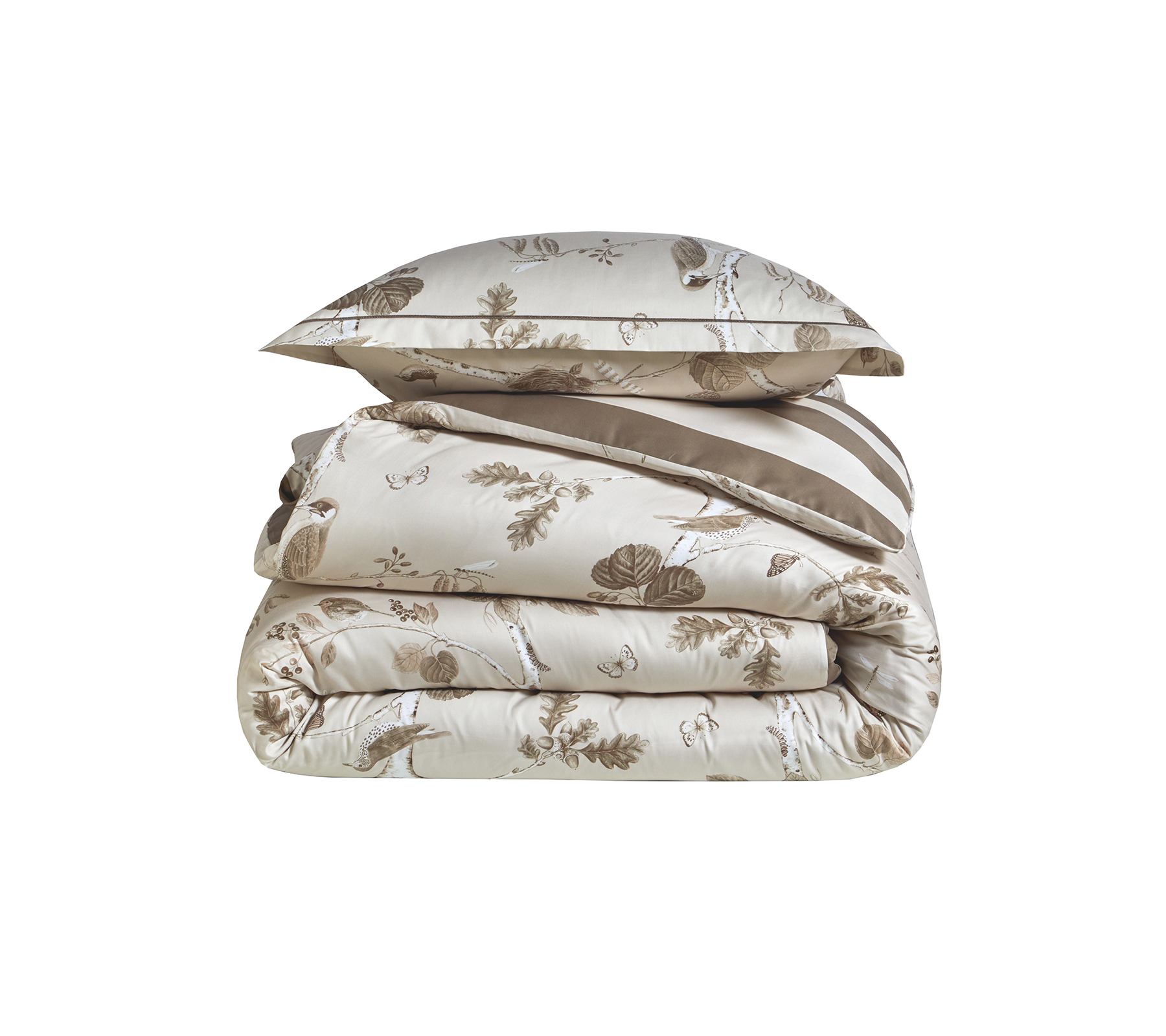 Drap 180/290 cm Satin 100% coton peigné longues fibres 120 fils/cm² Rappelant la beauté des jardins anglais, le drap plat WOODLAND en satin de coton apporte à la chambre une atmosphère raffinée et naturelle. Ses motifs délicats d’oiseaux et de feuillages, inspirés des paysages des cottages anglais, créent un décor poétique et élégant.