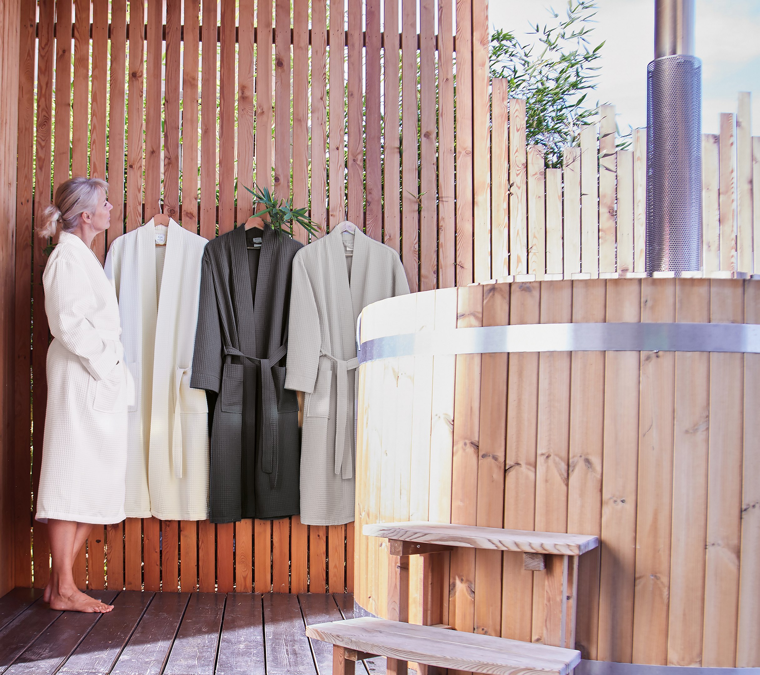 Vous êtes comme dans les plus beaux palaces. Nous avons apporté un soin tout particulier aux finitions : un large col kimono moderne, une ceinture avec passants et 2 poches.